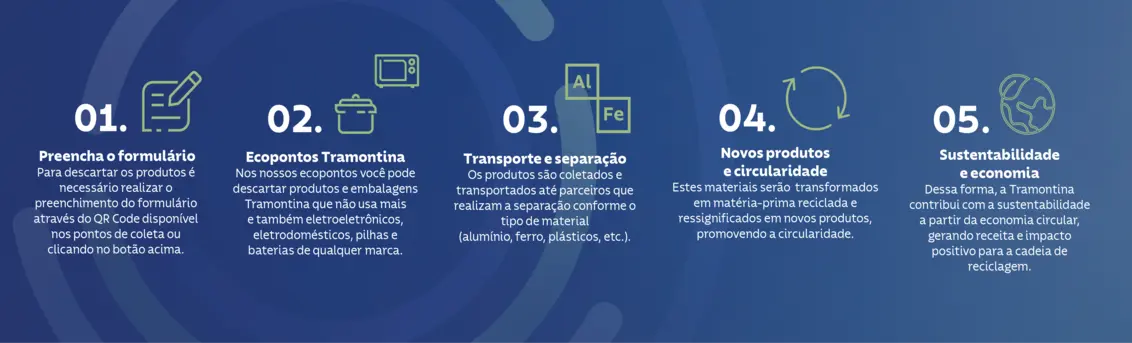 Um programa de logística reversa para dar um novo destino àquele utensílio esquecido no seu armário e beneficiar a cadeia de reciclagem. Esta ação promove a circularidade, faz bonito com a natureza e gera impacto socioambiental positivo. Atualmente, o programa conta com mais de 20 pontos de coleta nas lojas oficiais do Brasil.